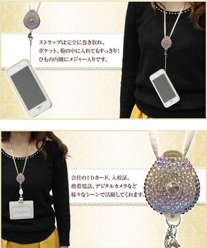 ボタンひとつで紐部分(ストラップ)の長さを自由に調整・固定することができ’必要な時にだけ、必要な長さに調整して使える’大変使い勝手の良い実用性・携帯性・収納性に優れた、他にない便利なネックストラップです。